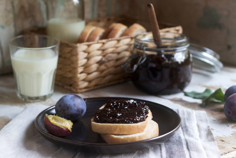 Both versions of plum jam can be stored in a cool and dark place. In these conditions, sterilized and sealed jars can last up to one year. Once a jar has been opened, however, it is important to keep it in the refrigerator and consume it within a few days.