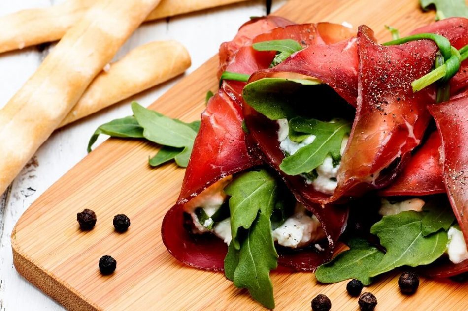 #3 Bresaola Rolls, Goat’s Cheese and Orange Spicy Sauce