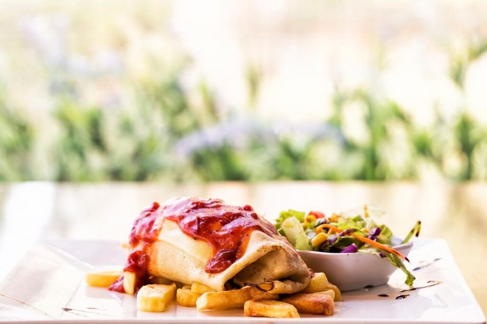 #2 Crêpes with Goat’s Cheese, Rocket Salad and Blueberry Preserve