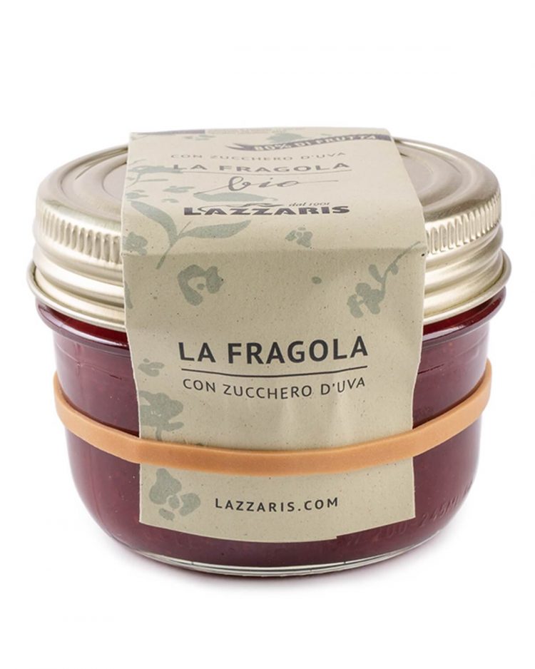 Preparazione di Fragole: fragole* 80%, zucchero d’uva*, succo di limone*. *Ingredienti biologici. Senza Glutine. Senza Pectina.
