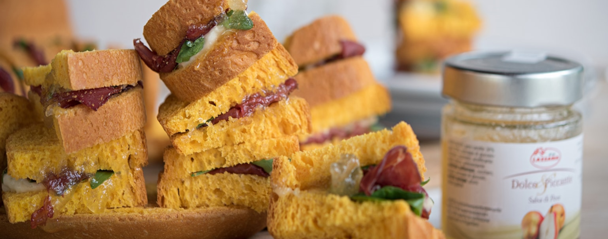 3.     Panettone gastronomico moderno farcito di bresaola, salsa di pere, gorgonzola e rucola