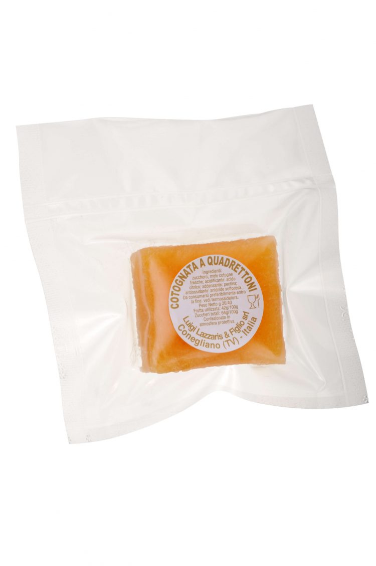 320g di cotognata Lazzaris; 4 carciofi freschi; 1 mela; 100g di valeriana; 40g di olio extra vergine di oliva; 20g di aceto di mela; sale; pepe da mulinello; 40g di grana con stagionatura 32 mesi; petali di fiori per decorare.